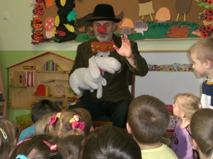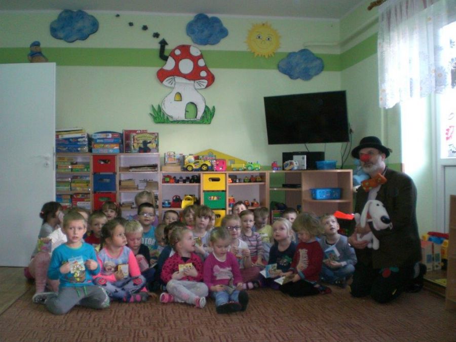 W ramach akcji: „Cała Polska czyta dzieciom” odbyło się w naszym przedszkolu spotkanie z aktorem – panem Piotrem Witoniem. Wystąpił on jako Pan Kuleczka, który czytał dzieciom książki, zadawał różne zadania i sprawił, że dzieci poruszyły swoją wyobraźnię i przeniosły się w inny, bajkowy świat. Na zakończenie tego pouczającego spotkania Pan Kuleczka podarował każdemu dziecku książeczkę i podkreślił, jak ważne jest czytanie dzieciom książek. Pan Kuleczka otrzymał od dzieci pamiątkowy dyplom z podziękowaniem za spotkanie.